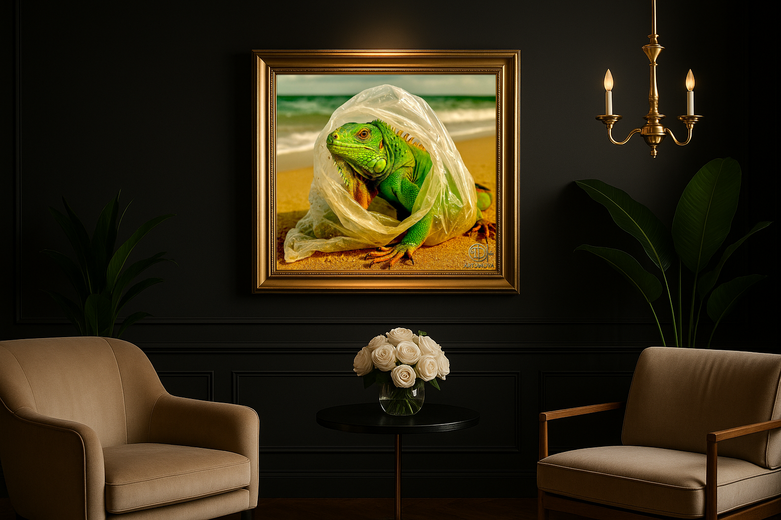 Le plastique devient métaphore de nos entraves modernes, mais l’iguane incarne l’espérance : une nature qui persiste, une beauté qui brille à travers les obstacles. Comme un voile, cette barrière translucide ne peut cacher la force et la dignité de la vie.